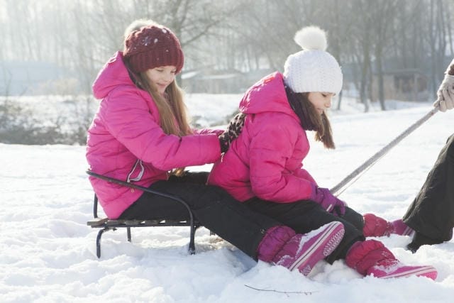 冬の澄んだ空気の中を駆け抜け、雪山の美し …